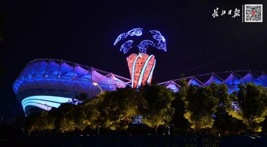 位于武汉体育中心体育场的军运会火炬。记者喻志勇摄