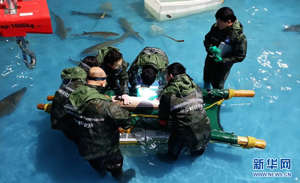 图为科研人员在给待放流的中华鲟打上声呐标。新华网发 李茂华摄“近年来新技术的应用,大大提高了对中华鲟的监测效果。”姜伟说,通过卫星标记追踪中华鲟在海洋的活动轨迹,科研人员对中华鲟在近海的分布情况有了初步判断,发现中华鲟在浙江舟山附近海域出现得比较频繁。近年声呐调查评估结果显示,放流中华鲟进入海洋的最高比例已超过70%。