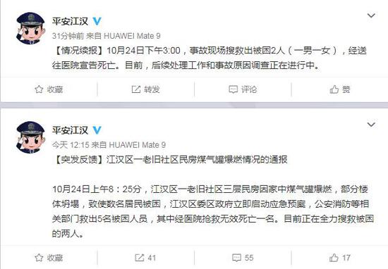@平安江汉:【情况续报]】10月24日下午3:00,事故现场搜救出被困2人(一男一女),经送往医院宣告死亡。目前,后续处理工作和事故原因调查正在进行中。