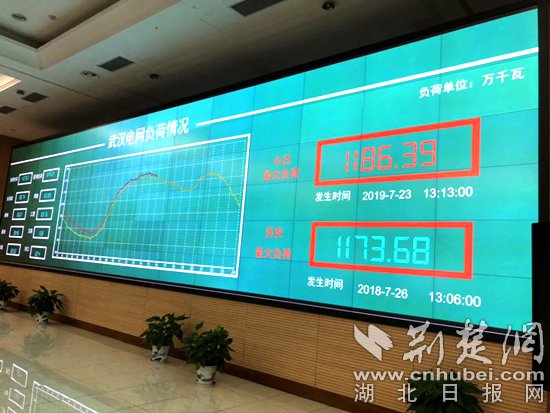 荆楚网客户端一荆楚网消息(记者郑一鸣、通讯员彭一哲)记者从国网武汉供电公司获悉,今日(7月23日)13时13分,武汉电网最大用电负荷达到1186.4万千瓦,突破2018年7月26日的历史最大负荷1173万千瓦,创下历史新高。