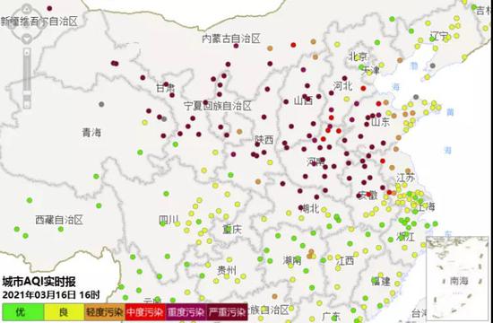 2021年3月16日16时 全国空气质量实时报武汉市中小学、幼儿园暂停学生户外体育等课程,停止学生集体户外活动。