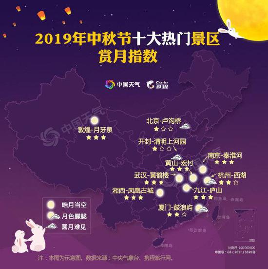 那么,中秋节出游,哪些景区是赏月的绝佳去处?中国天气网联合携程发布的《2019年中秋节出行和赏月报告》显示:杭州西湖、黄山宏村、卢沟桥、南京秦淮河、庐山、开封清明上河园、武汉黄鹤楼、厦门鼓浪屿、凤凰古城、敦煌月牙泉将是今年中秋出游的十大热门景区。