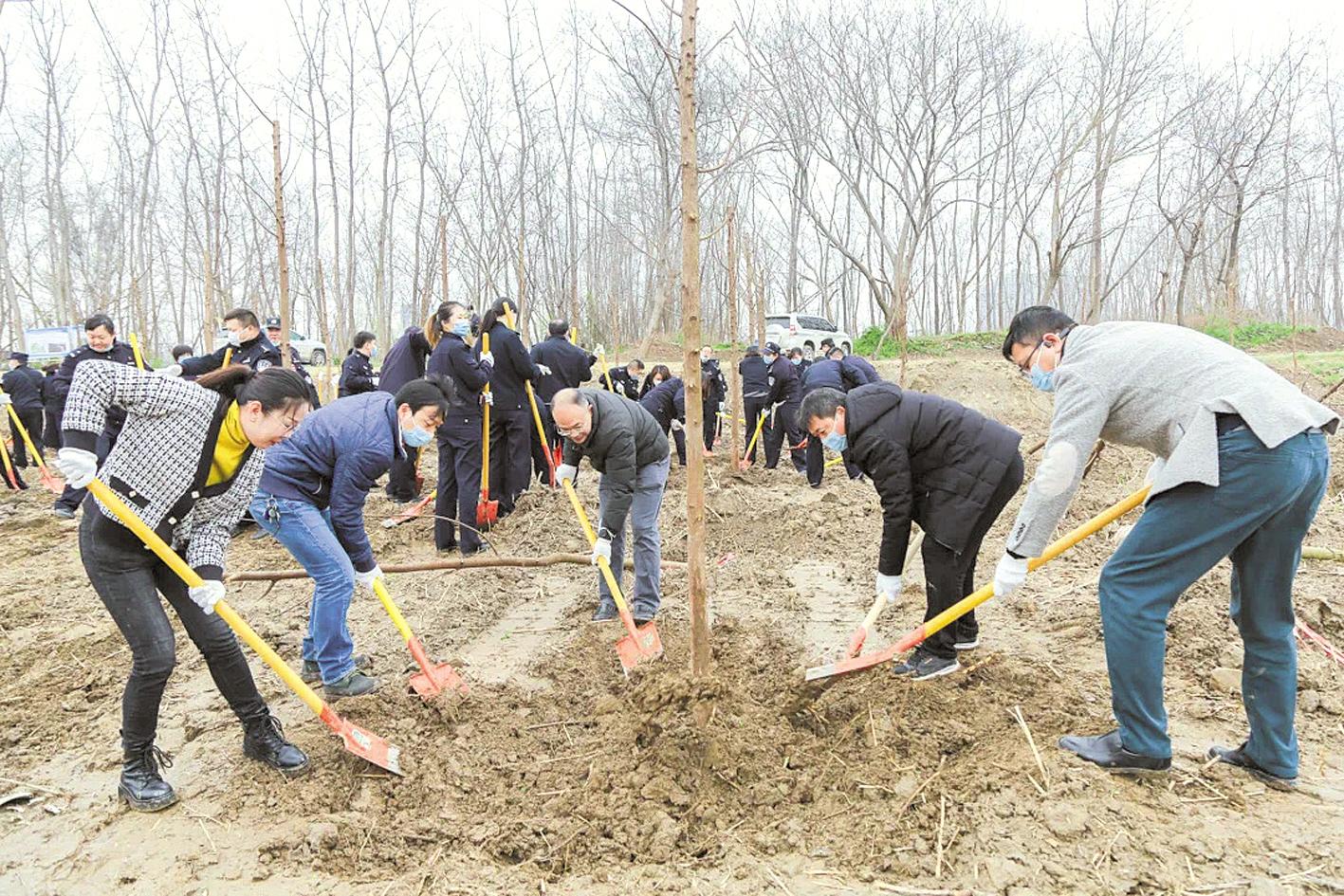 春风催新绿,植树正当时。