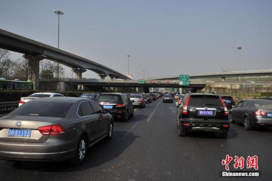 资料图:高速路上车流集中。中新网记者 金硕 摄