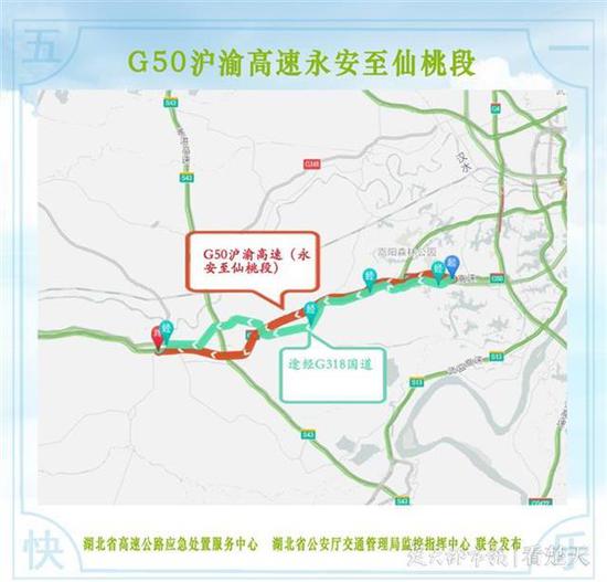 易缓行路段:G50沪渝高速永安至仙桃段。