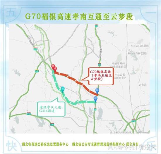 易缓行路段:G70福银高速孝南互通至云梦段。
