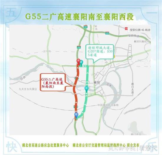 易缓行路段:G55二广高速襄阳南至襄阳西段。