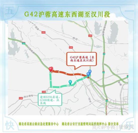 绕行建议:可绕行S106省道经G348国道、汉长线避开易缓行路段后再上高速。