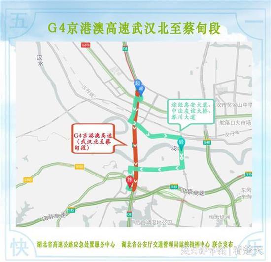 易缓行路段:G4京港澳高速武汉北至蔡甸段。