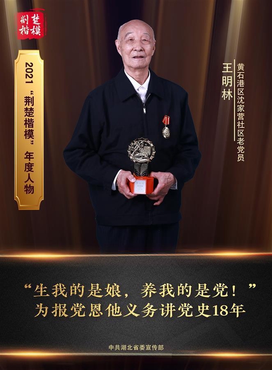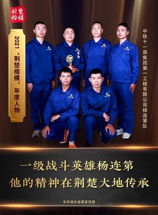 2021年,全省共诞生了90人(组)“荆楚楷模”月度人物。经各地各部门提名推荐、综合评审、研究决定、公示等程序,王明林等9名个人及中铁十一局集团第一工程有限公司杨连第队当选2021“荆楚楷模”年度人物。