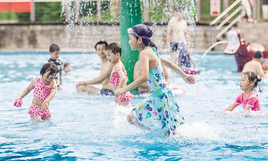 入伏让不少家庭开启“玩水”撒欢模式。武汉玛雅海滩水公园提供数据显示,7月10日入园人数超过2万人,为今年开园以来最高。