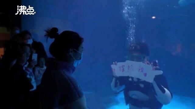 武汉小伙情人节水下同白鲸求婚女友:提前十天练习 适应水下温度 - 新浪湖北