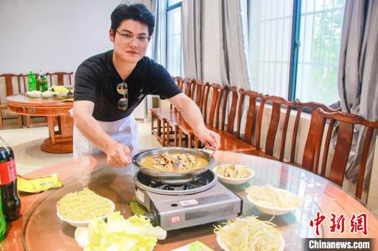 学生下厨烹饪鱼火锅 廖磊磊 摄