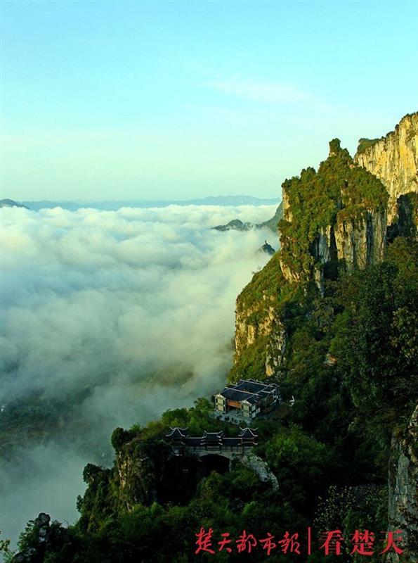 龙池山海拨约800米,峰峦如聚,云海生涛,气势雄浑。此地在宜昌都不太知名,在户外达人“竹君”的介绍下,楚天都市报记者偶然得以探胜。