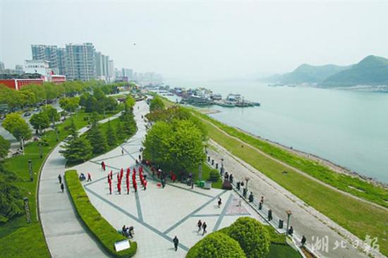 实景。宜昌市委市政府提出,宜昌是具有独特滨江自然风光的江城,要推进滨江公园向东延伸至猇亭古战场,把节点变成景点,将城区建成景区,让城市变成花园,形成一半山水一半城的独特城市景观。