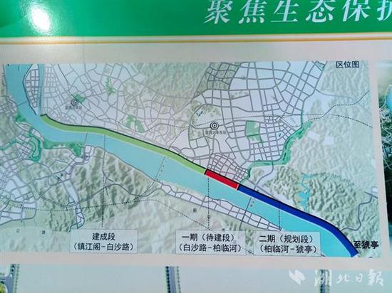 实景。宜昌城市园林绿化建设管护中心主任刘新平介绍,滨江公园延伸段项目分两期建设,预计总投资过亿元。一期从白沙路拓展至柏临河入江口,今年11月开建。二期从柏临河入江口拓展至猇亭。