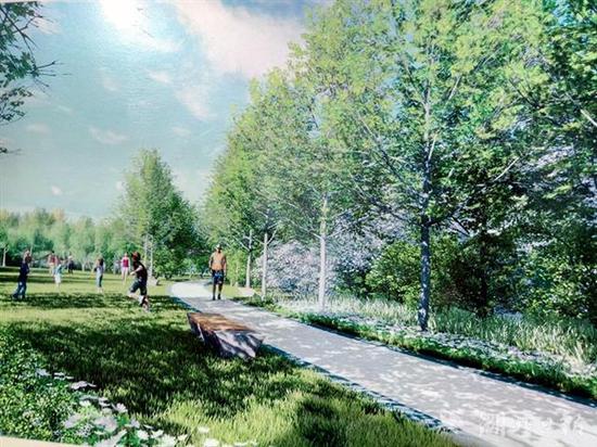 效果图。据初步规划,滨江公园延伸段一期项目,将建设疏林草地、时光环、江豚乐园、紫藤花廊、银杏林、雨水花园等景观节点。同时,合理布置地下廊道、公共厕所、生态停车场等设施,满足市民游憩需求。