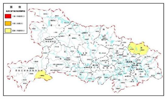 6月15日下午,湖北省自然资源厅发布最新一期地质灾害气象风险预警,6月15日20时-6月16日20时,预计鹤峰县、红安县、麻城市以及其他暴雨中心发生崩塌、滑坡、泥石流的风险较大,为三级黄色预警,请相关地方政府及有关部门做好地质灾害防范工作。