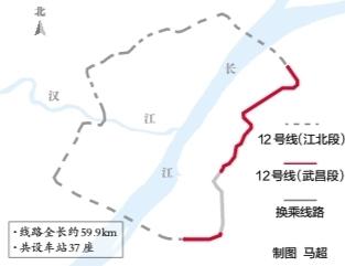 公告称:武汉市轨道交通12号线工程是武汉市轨道交通第四轮建设规划中的主要线路,全线包括武昌段和江北段,线路全长约59.9km(全地下线路),共设车站37座。