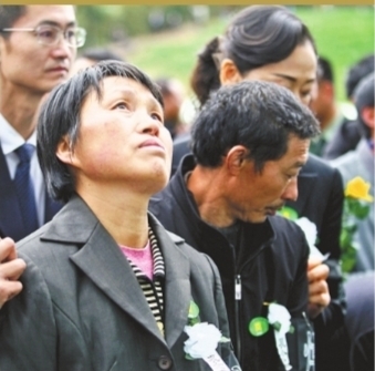 仪式最后一个环节:家属为烈士敬献菊花。现场奏起哀乐,家属们在搀扶之下缓缓走向献花台。此刻,多数家属再也抑制不住情绪,悲声恸哭。现场的工作人员、战士无不动容,纷纷低头抹泪。