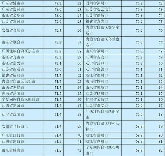 就中部地区城市排名来看,郑州全国排名第19名(同比2016年下降8位)、武汉第20名(上升4位)、合肥第26名(上升7位)、太原第34名(持平)、南昌第41名(上升7位)、长沙第47名(上升12位)。我省入围百强的另外两座城市排名相对靠后,黄石排名全国第59位(下降4位),鄂州居第99位(下降17位)。