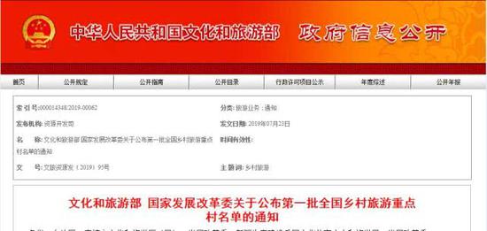 首批320个乡村全部进入旅游重点村名录,将优先享受国家有关支持政策。