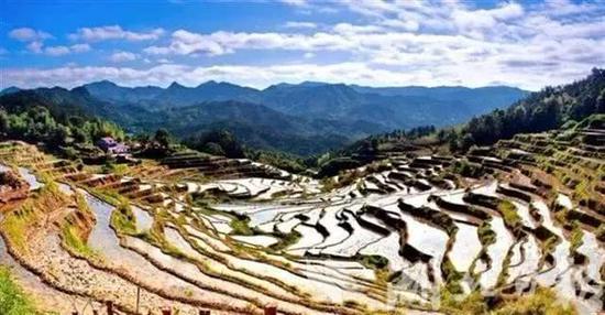 观赏高山梯田不见得要去广西、云南,黄冈市蕲春县檀林镇雾云山村就有我省最壮观的高山梯田景观。雾云山梯田美在一年四季,春天万物复苏,夏天青葱稻浪,秋天收获金黄,冬天银装素裹。