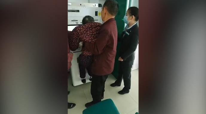 原标题:94岁老人被抱起进行激活社保卡,银行道歉