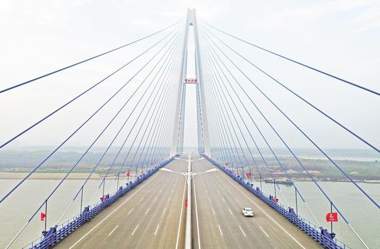 “青山长江大桥主桥长1638米,主跨938米,一步跨越长江,是世界上跨度最大的全漂浮体系斜拉桥。”设计方、中铁大桥院设计负责人胡辉跃介绍,全漂浮结构,意味着桥面与主塔间采用软性连接,这一设计可以让桥梁更好地适应大风、地震等外力影响。