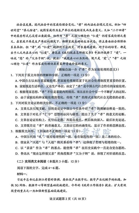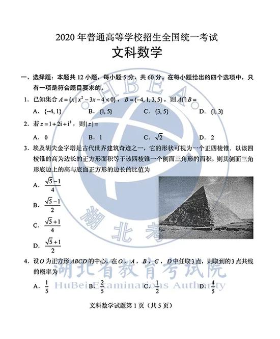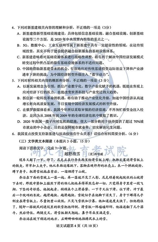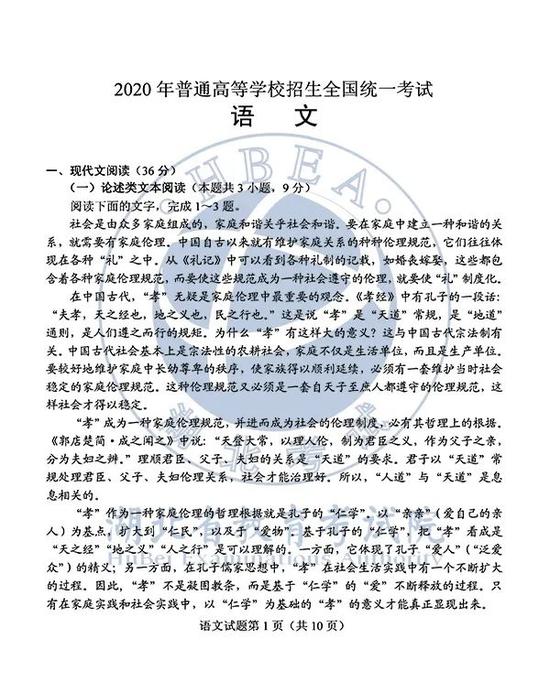 权威发布!2020年湖北高考各科试卷及答案来了!