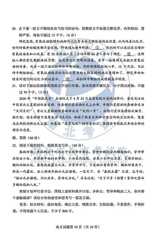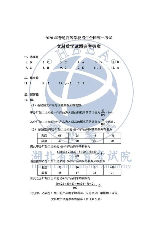 刚刚,2020年高考湖北各科试卷+参考答案,高清版出炉了!快来看看答案,为填报志愿做准备吧!