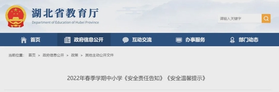 湖北省教育厅发布春季学期幼儿园、中小学、高等学校安全温馨提示。