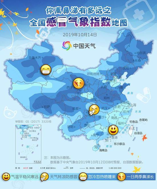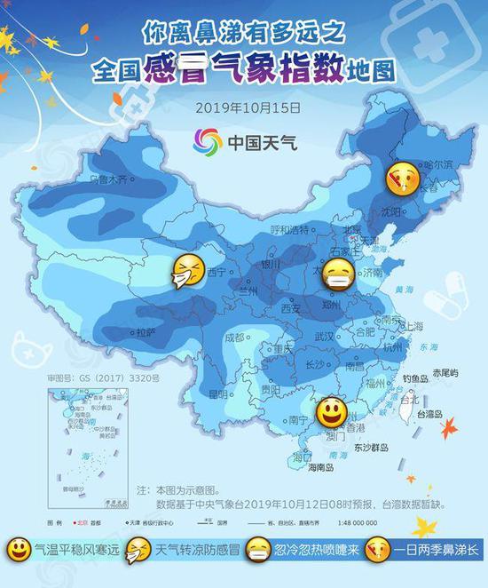中国天气网讯 近期,影响我国的冷空气一股紧接一股,在零敲碎打中让气温将降到新低,预计今天(12日)夜间开始到下周初,我国近四分之三地区气温将创今年下半年来的新低,部分地区降温幅度超10℃。气温起伏时,感冒病患往往扎堆出现,中国天气网贴心推出全国感冒气象指数地图,来看看你离鼻涕还有多远?