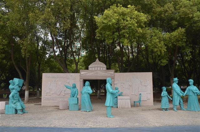 8月26日,汉口江滩兰陵门入口处,一块刻有“万里茶道”四个大字的巨石格外醒目,十几组惟妙惟肖、富有异国风情的雕塑在江滩的绿地、树林下蜿蜒排列。此处就是日前刚建成的“万里茶道文化园”。截至今日,除万里茶道文化园入口——“顺丰茶栈码头”牌坊外,汉口江滩“万里茶道”文化园已基本完工,日前正在加紧开展园区清理等收尾工作,计划将于年底全部建成。