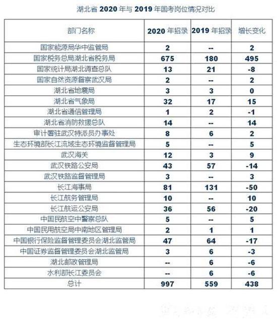 原标题:2020年国考湖北招录997人,较去年有大幅增长