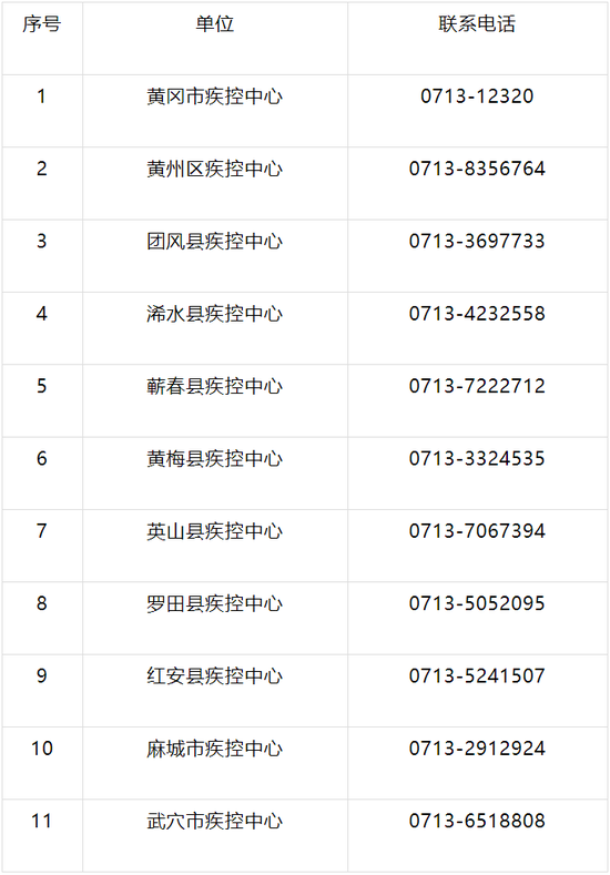 附:黄冈市各县(市、区)疾控中心咨询热线: