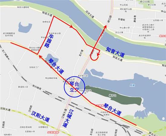 对于汉口去往汉阳方向的车辆,汉口有两处上桥匝道去往月湖桥,分别位于解放大道(同济医院西侧)和硚口路(中山大道转盘)。因中山大道转盘目前在施工中,上桥匝道仅一股车道,交警建议尽量选择解放大道匝道去往月湖桥。具体线路为:航空路方向车辆,可直接从同济医院门口上解放大道高架,经解放大道匝道左转去往月湖桥;宗关方向车辆,因右转匝道地面层正在施工,需直行至航空路转盘调头,再通过解放大道匝道左转去往月湖桥。