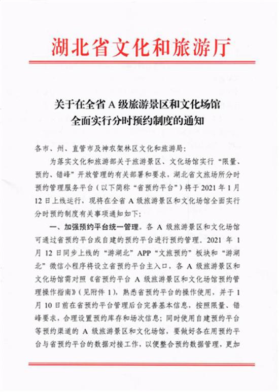 原标题:湖北所有A级景区和文化场馆全面分时预约,1月12日平台上线