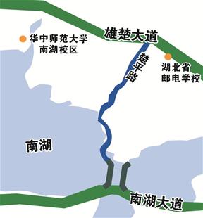 南湖大道与雄楚大道之间的南湖区域,南北向通道仅有珞狮南路和民族大道两条主干道,两条主干道经常拥堵。记者在武汉市规划局官方网站看到,位于两条主动脉中间的楚平路将连接雄楚大道与南湖大道,改造工程包括现有道路改造、新建道路和跨南湖大桥三部分。日前,跨南湖大桥已经开工,主桥长577米,双向4车道,桥两边还有各3米宽的人行道,大桥有望明年底建成,届时楚平路也将全线通车。