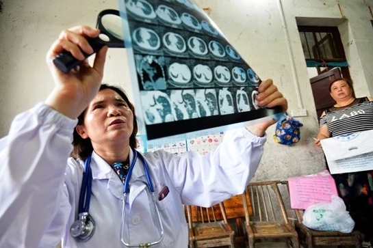 杜荣辉在村民家中看片子。资料图片2009年,到杜荣辉老家求诊的病人数以百计,年龄最小的25岁,最大的77岁,其中老人占六七成,有不少是留守老人。