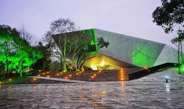 毗邻未名湖(鉴湖),傲居珞珈山畔,万林艺术博物馆静卧在武汉大学校园的中心位置。建筑外立面用铝合金一块一块人工拼接,金属凹凸质感令它好似一块从天外飞来的巨大陨石,又像一颗“钻石”。