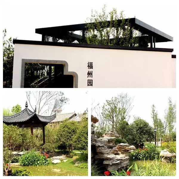 福州园以“福印”为主题,以“茶田、水系、花木、亭台”为设计元素,向我们一展清新茶田、雨水花园。远处,茶田正迎风拂动;近处,福池正微波荡漾。