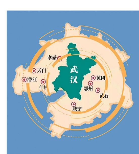摊开武汉城市圈区位图,可见武汉地处长江、汉江交汇处。其余8座城市,4座毗邻长江,4座坐拥汉江。