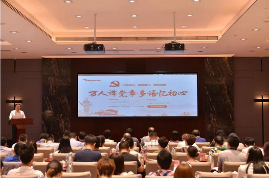 会议随后进行了“万人译党章、多语忆初心”活动的启动仪式,传神语联公司常务副总裁、党支部书记傅强介绍了活动的情况。作为活动的一部分,该公司4名员工还在会议现场用英、俄、法、日四种语言朗读了入党誓词。