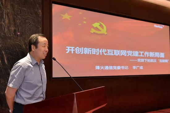 此外,会议现场还通过网络对烽火通信党委书记李广成主讲的“不忘初心 牢记使命”主题党课活动进行了直播。主题党课中,李广成介绍了烽火通信利用互联网技术和新媒体平台在公司内部开展党建工作的成功经验,并总结出解决基层党建问题的“烽火方案”。