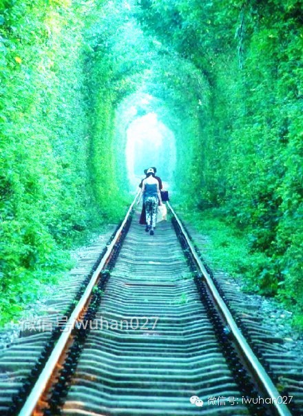 在乌克兰,有一条长约3公里的“爱情隧道”,是一段铁路。当春天来临,这段铁路两边茂盛的树木就会枝繁叶茂,连成天然的拱形长廊,将繁忙的铁轨化身为“爱情隧道”,据说这条“隧道”还有个美丽的传说,一对情侣可以到这里许下一个愿望,如果他们的爱情足够真挚,那么愿望就会成真。