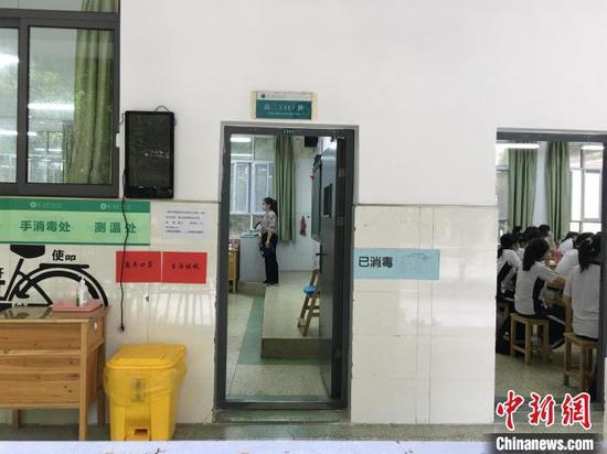 武汉高中非毕业年级10日复课 马芙蓉 摄湖北省武昌实验中学高二年级主任王海崧告诉记者,为迎接复学,学校在前一天进行全面卫生清洁和消毒。复学后校园实行封闭管理,采取分散就餐,由专门公司配餐保证安全卫生。