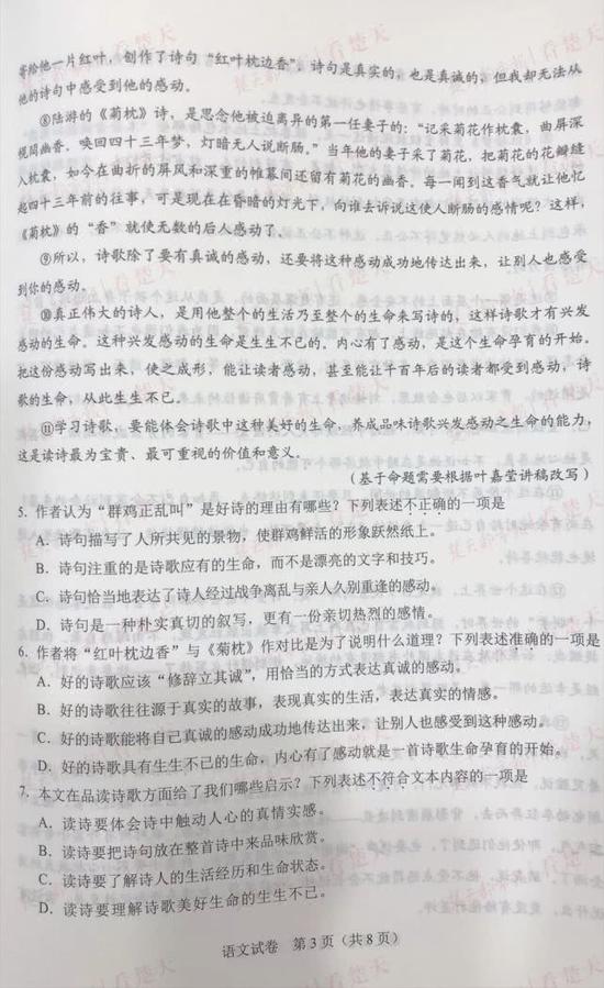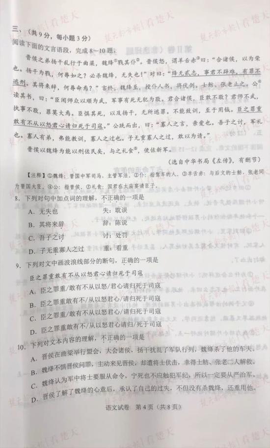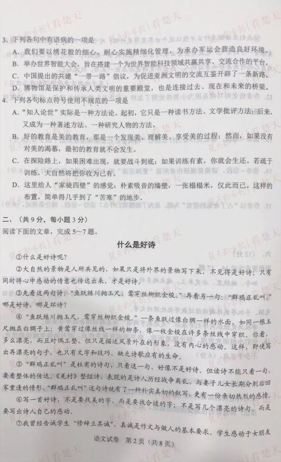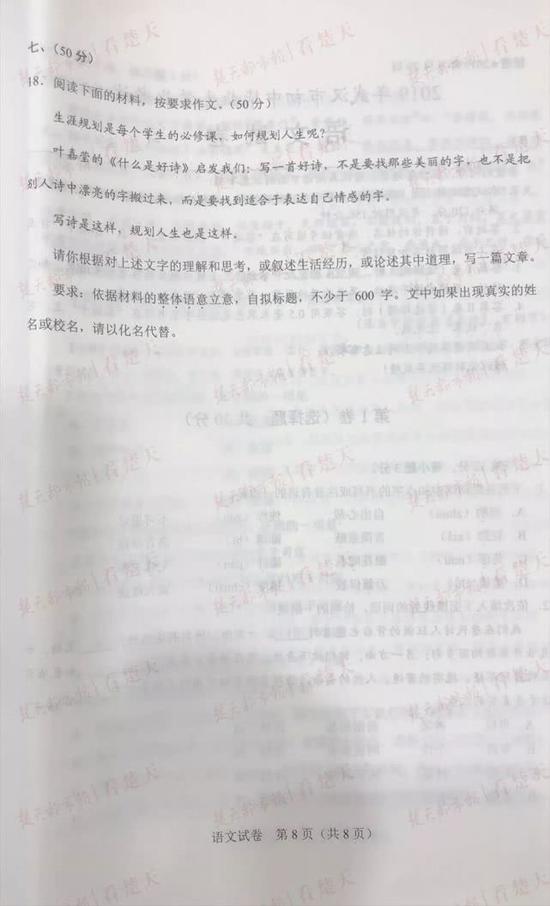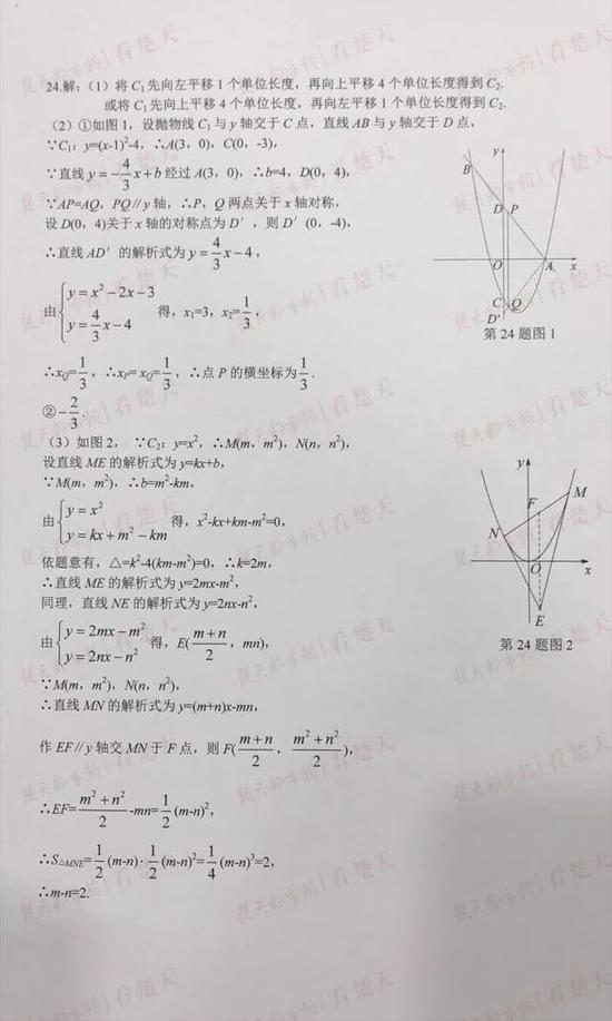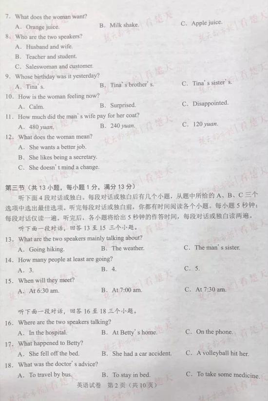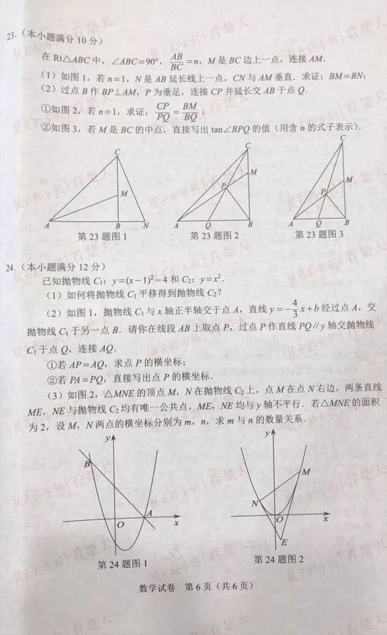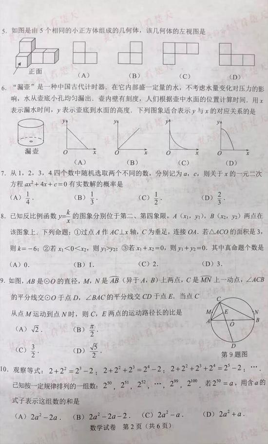 武汉中考试题及参考答案,供考生们参考、估分