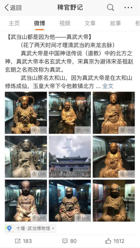 在本次活动中,来自各地的微博体验官们依次造访了武当博物馆、玉虚宫、金顶、南岩、紫霄宫、逍遥谷、太子坡、八仙观、太极湖、快乐谷等景区,欣赏了武当山的自然奇景和建筑遗迹,品尝了武当山特有的道家斋宴,感受了武当山深厚的历史文化,体验了武当功夫的魅力和网红民宿的惬意……武当山的自然风光和人文底蕴给体验官们留下了美好而深刻的印象,大家不由自主的在各自的微博、朋友圈等社交平台上分享着武当山的见闻和感受,表达着对武当山的喜爱和赞美。