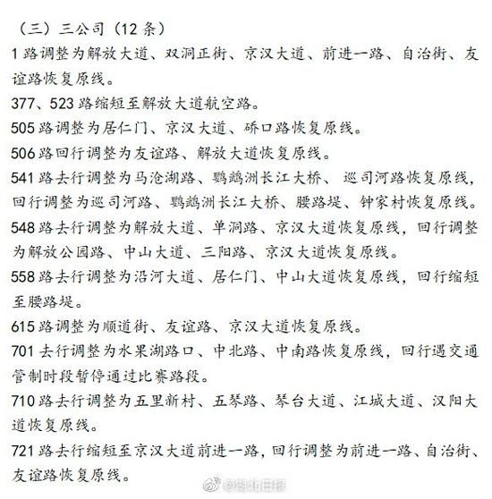 原标题:2021汉马比赛期间部分公交线路临时调整